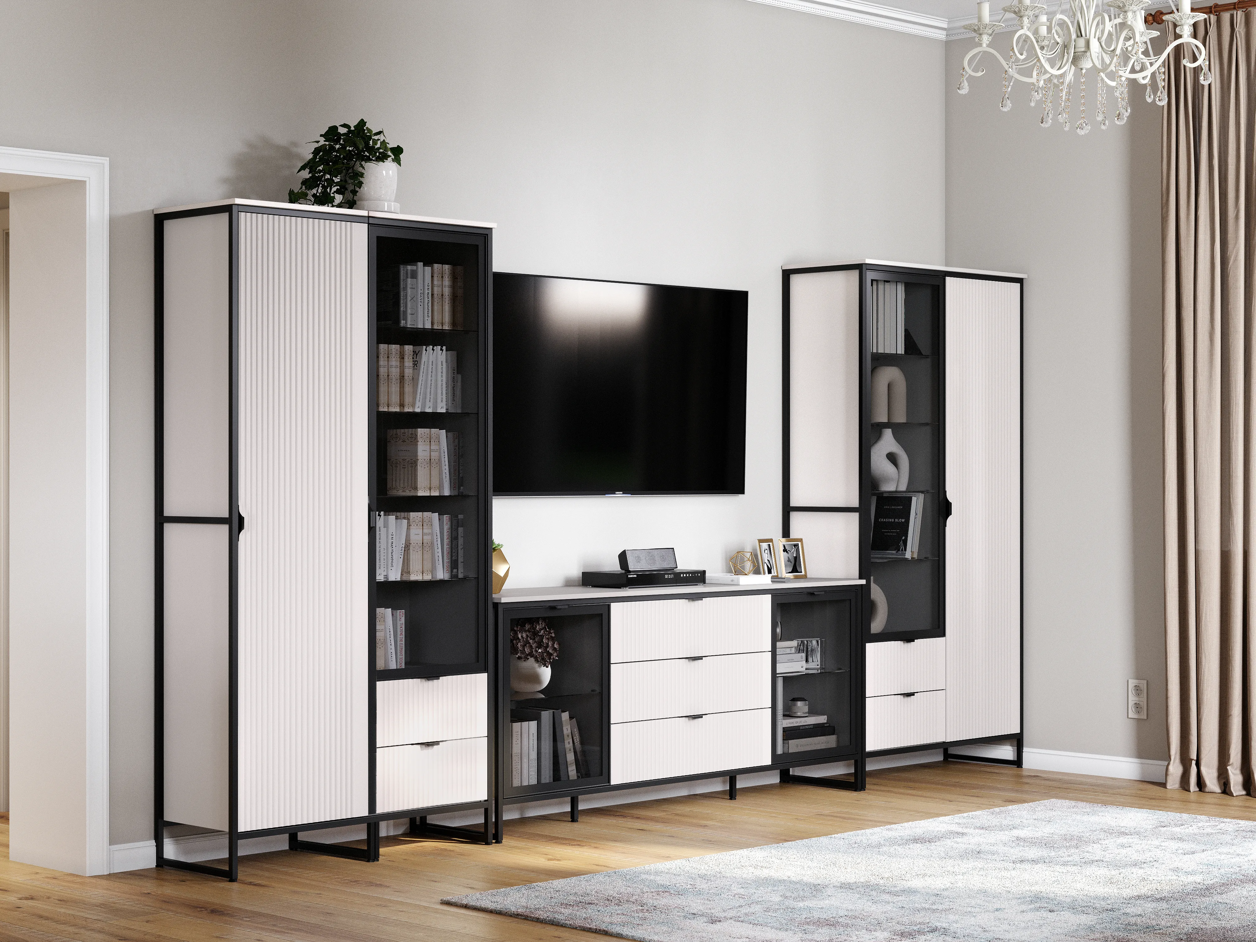 Коллекция модульной гостиной "Нора" - современный оригинальный стиль. Декоративная продольная фрезеровка на МДФ фасадах и опоры на металлокаркасе соответствуют модным тенденциям этого года в ведущих зарубежных коллекциях. Дизайн коллекции гармонирует со стилем минимализм и лофт.